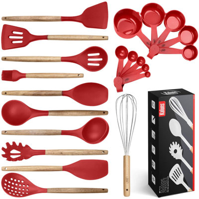 Gray nylon salad serving set. Featuring 24 pieces of high quality cooking tools, this set has everything you need. The home hero kitchen utensil set features the basics and more, including measuring utensils, graters, and a bottle opener. Wooden utensil set sale $26.24. You also find sets with spatulas with long and slender blades for better control when icing cakes or smoothing batter.